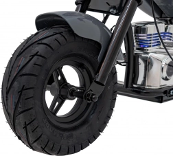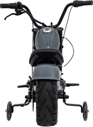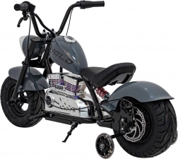 Chopper Warrior v elegantní šedé barvě je perfektní volbou pro malé jezdce, kteří chtějí skutečný motorkářský styl. Díky robustní konstrukci, nafukovacím pneumatikám 32×10 cm a vysoké nosnosti až 80 kg nabízí stabilní a pohodlnou jízdu i na delších trasách. Start probíhá jednoduše tlačítkem, zatímco maneta umožňuje plynulé dávkování výkonu.