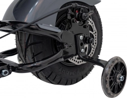 Velké nafukovací pneumatiky 32×10 cm zajišťují výbornou přilnavost, boční kolečka přidávají jistotu začátečníkům.