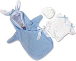 Panenka je dodávána bez oblečení, což umožňuje děti zapojit kreativitu při výběru svého oblíbeného oblečku z kolekce Llorens pro miminka velikosti 35-36 cm. Balení obsahuje dudlík jako doplněk a tři knoflíkové baterie LR44 s návodem na výměnu. Vyrobeno ručně ve Španělsku.