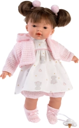 Funkčnost: Po vytažení dudlíku z úst říká panenka "mama", "papa" a vydává reálný zvuk plačícího dítěte. Tyto zvuky lze utišit magnetickým dudlíkem. Model neobsahuje oblečení; doporučujeme dokoupení originálního oblečení Llorens pro velikost 33 cm.