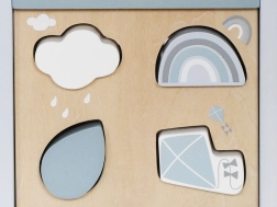 - Sada tvarů: Obsahuje různé tvary a barvy, které dítě může vkládat do odpovídajících otvorů, což napomáhá rozpoznávání tvarů a zrakově-pohybové koordinaci.