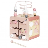 Multikostka dřevěná poskytuje množství atraktivních aktivit, které zcela jistě zaujmou a potěší dítě. Každý prvek je pečlivě navržen pro snadné uchopení a manipulaci malými dětmi. Silná konstrukce z dřeva zaručuje dlouhotrvající trvanlivost, zatímco jemná pastelová grafika stimuluje představivost a soustředěnost. Pohyblivé prvky na kostce rozvíjejí manuální dovednosti a zručnost dítěte.