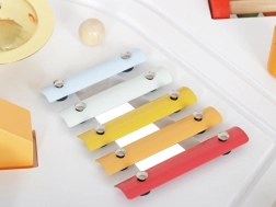 Dřevěný stůl obsahuje pestré cymbálky, které pomáhají rozvíjet hudební a rytmické schopnosti dítěte.