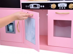 Tato stylová dětská dřevěná kuchyně je snem každého malého kuchaře. Je vyrobena s detaily pro reálný vzhled a je nejen esteticky příjemná, ale také plně funkční pro realistickou hru. Hračka je ideální pro děti, které rády napodobují dospělé a chtějí se cítit jako ve skutečné kuchyni.