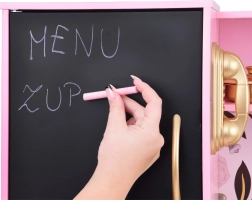 Lednice zahrnuje černou tabuli pro psaní křídou, ideální pro seznamy nákupu či recepty. Dále obsahuje výrobník ledu pro realistickou hru.