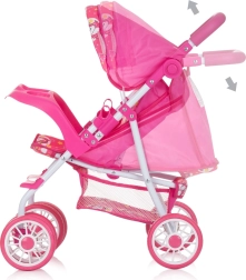 Bezpečnostní pás udrží panenku na místě, nastavitelná stříška ochrání před sluncem a košík pod sedátkem pojme vše potřebné.