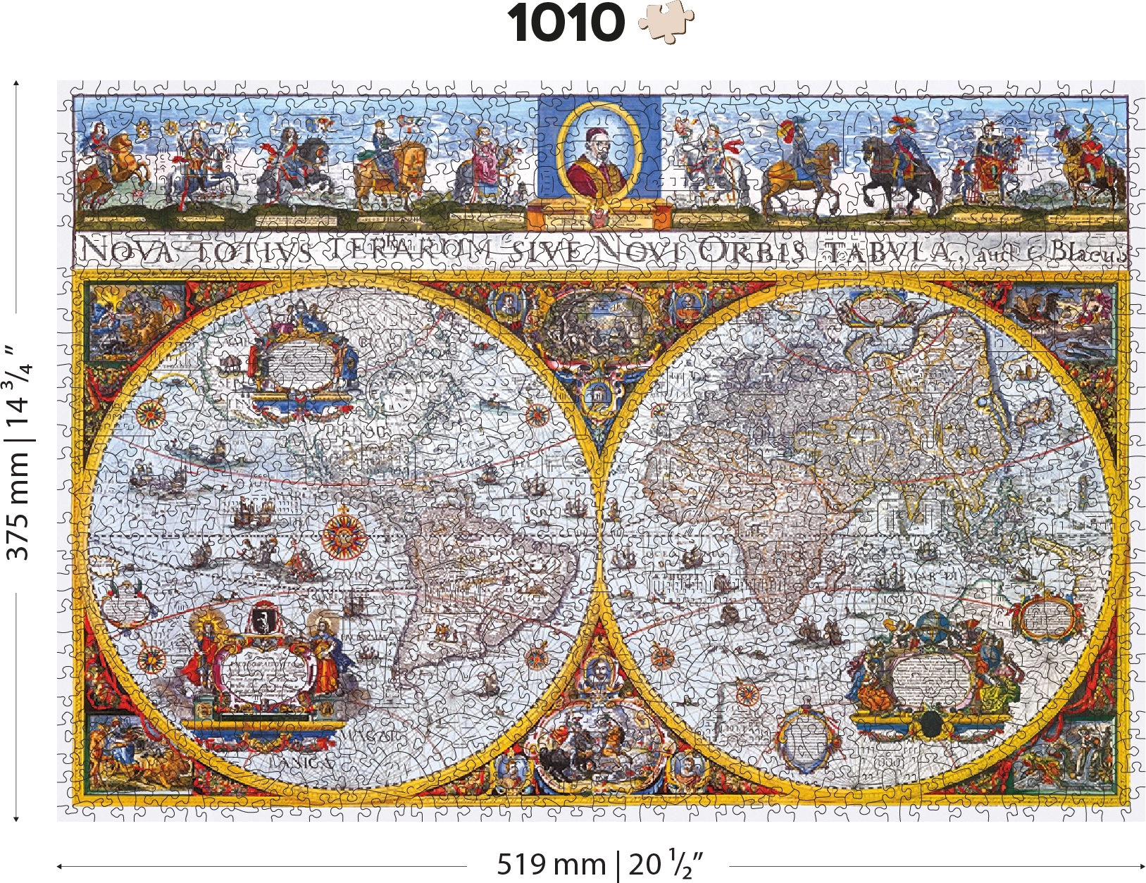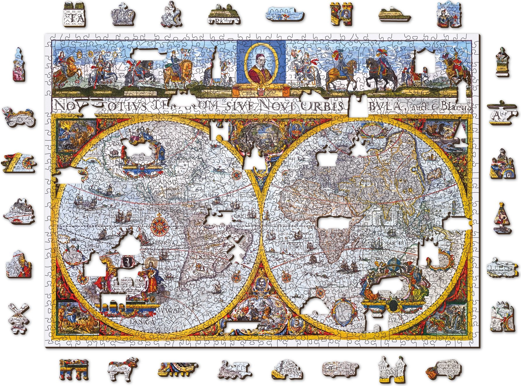 Dřevěné puzzle WOODEN CITY Antická mapa Nova Terrarum nabízí stylové zpracování s důrazem na detail. Speciálně tvarované dílky ve tvaru zvířat zaujmou na první pohled a díky zvýraznění laserem vynikne každý ornament starobylé mapy. Skládání je zábavné, promyšlené a zároveň představuje příjemnou výzvu.