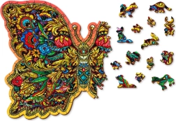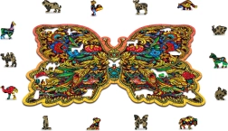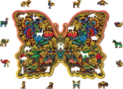 Tyto barevné dřevěné puzzle ve tvaru motýla přinášejí zábavu i relax. Každý dílek je přesně vyřezán laserem, což zajišťuje hladké hrany a detailní vzory. Mnohé dílky mají tvar zvířátek, které lze použít také jako drobné samostatné figurky.