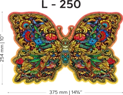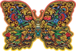 Motýl s bohatými vzory a výraznými barvami promění hotové puzzle v dekorativní obraz, který vynikne v každém interiéru.