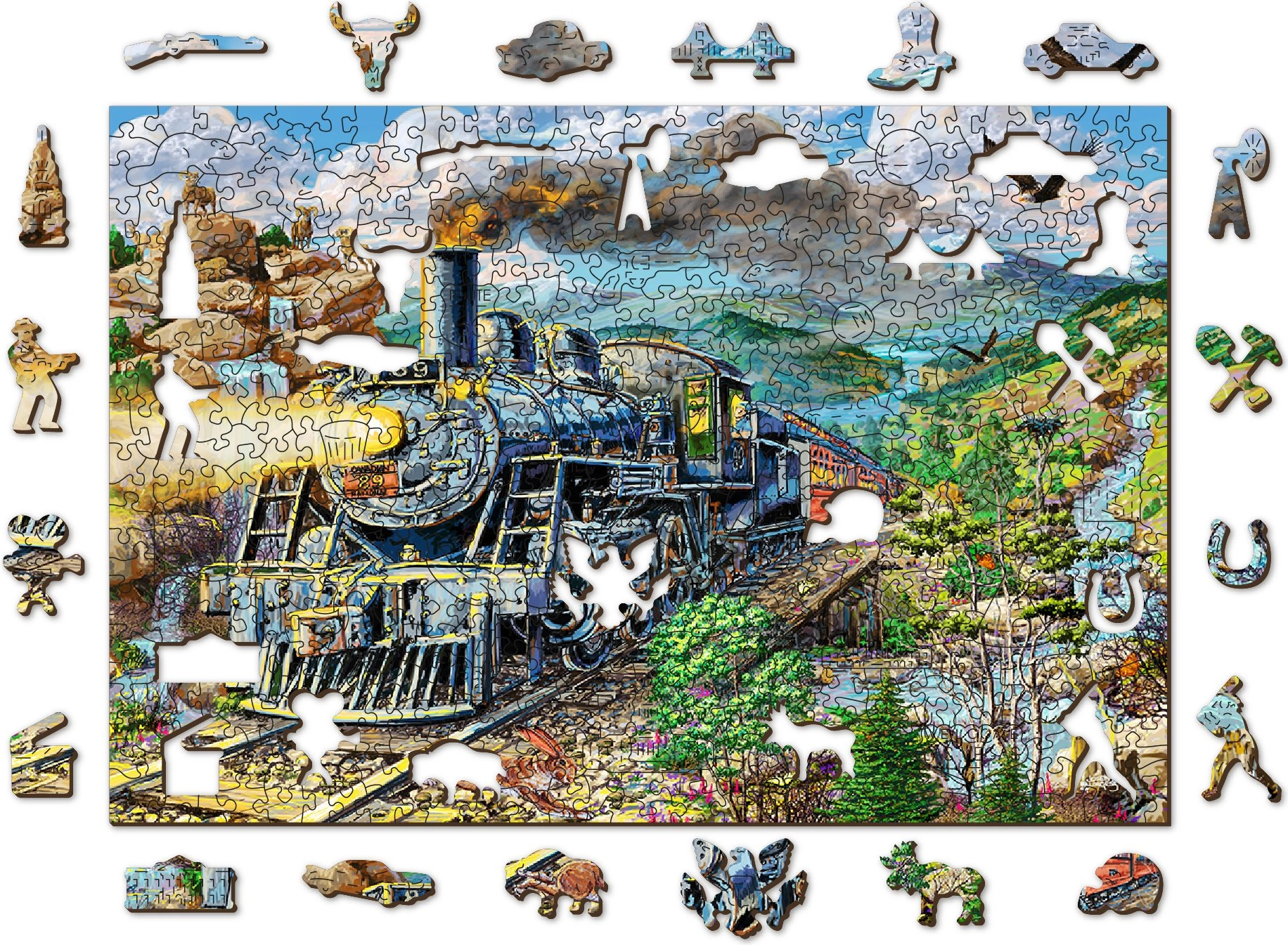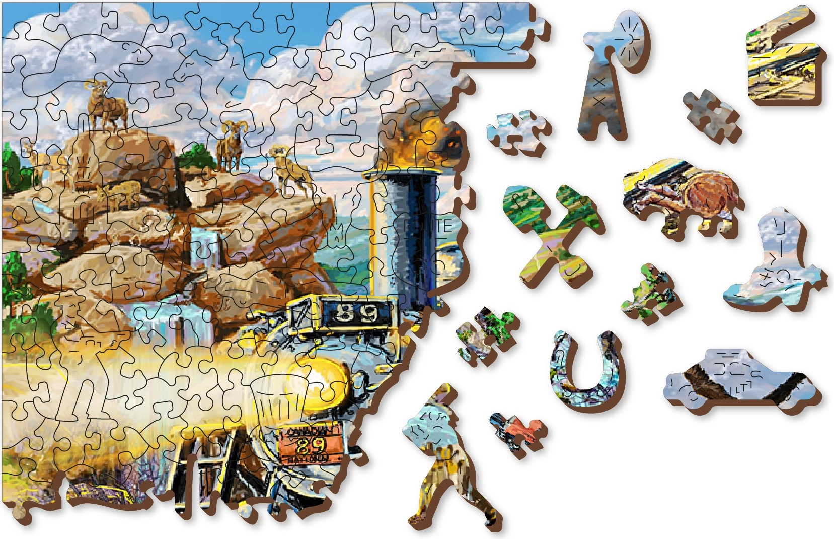 Dřevěné puzzle WOODEN CITY se zaměřuje na kvalitu, design a ekologii. Téma železnice potěší milovníky vlaků i náročné skládače. Díky laserem zvýrazněným detailům vyniknou originální tvary dílků, které lze postavit i samostatně jako drobné figurky. Vyšší obtížnost při menším počtu dílků zaručí zábavnou výzvu a dlouhou herní hodnotu.