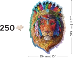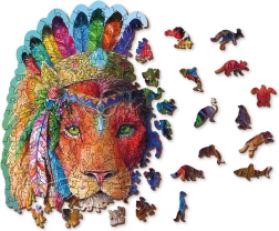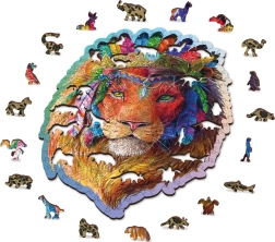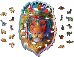 Objevte působivé dřevěné puzzle s motivem mystického lva s bohatým zdobením a pestrobarevnými detaily. Unikátně tvarované dílky, včetně zvířecích siluet, promění skládání v kreativní a napínavou zábavu. Díky laserem zvýrazněným detailům a dokonale hladkým hranám je skládání příjemné a výsledný obraz působí jako umělecký kousek vhodný i na dekoraci interiéru.