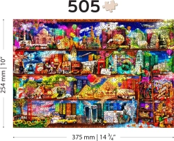 Vstupte do světa precizních dřevěných puzzle WOODEN CITY. Tento model s motivem police na knihy o cestování přináší výzvu pro milovníky skládaček: speciálně tvarované dílky, detailně zvýrazněné laserem, a oboustranné provedení pro dvojnásobnou porci zábavy. Část dílků má podobu zvířat, ikonických staveb či tematických předmětů – a mnohé z nich mohou samostatně stát jako malé figurky.