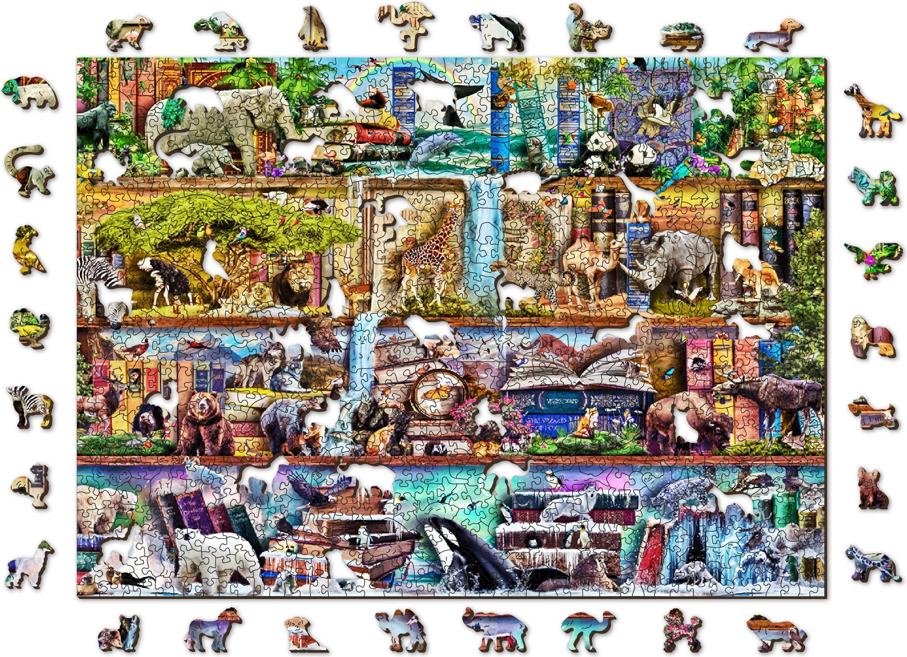 Toto prémiové dřevěné puzzle WOODEN CITY přináší jedinečný zážitek ze skládání. Speciálně tvarované dílky, z nichž mnohé mají podobu zvířat, doplňují jemné laserem zvýrazněné detaily. Některé dílky lze využít i jako samostatné drobné figurky. Díky rozmanitým tvarům je skládání náročnější než u běžných puzzle a poskytne vám dlouhé hodiny soustředěné zábavy.
