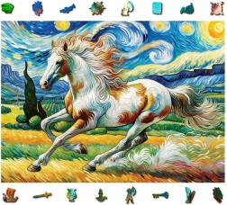 Dřevěné puzzle WOODEN CITY Rychlý kůň přináší kombinaci originality, designu a zábavy. Díky laserem zvýrazněným detailům a unikátním tvarům dílků (včetně dílků ve tvaru zvířat) je skládání poutavé a vizuálně atraktivní. Některé dílky lze postavit i samostatně jako drobné figurky.