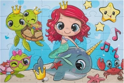 Objevte kouzlo podmořského světa s půvabným motivem mořské víly. Puzzle s 30 velkými dílky podporuje jemnou motoriku, trpělivost a logické myšlení dětí. Díky větším dílkům se skvěle hodí pro mladší děti, které si užijí radost z dokončeného obrázku o velikosti 29 × 18 cm.