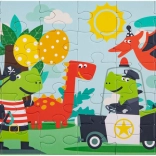 Toto barevné puzzle s motivem dinosaurů je skvělou volbou pro první skládačky. Velké dílky se dětem dobře drží, pomáhají rozvíjet koordinaci oko–ruka a podporují logické myšlení. Po složení získáte veselý obrázek o rozměrech 29 × 18 cm.