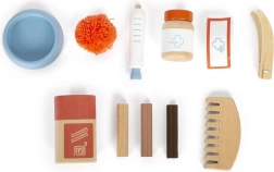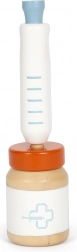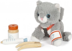 Dřevěná injekce s pružinovým mechanismem, dóza na léky a další pomůcky podporují autentickou hru na ošetření mazlíčka.