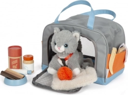 Tato bohatě vybavená sada přináší vše, co děti potřebují k péči o svůj plyšový chlupatý poklad. Kočička s postrojem může cestovat v pohodlné přepravní tašce s podložkou, a kdykoli je potřeba, děti mají po ruce pomůcky pro krmení, ošetření i mazlení. Hra na malého veterináře rozvíjí empatii a zodpovědnost zábavnou formou.