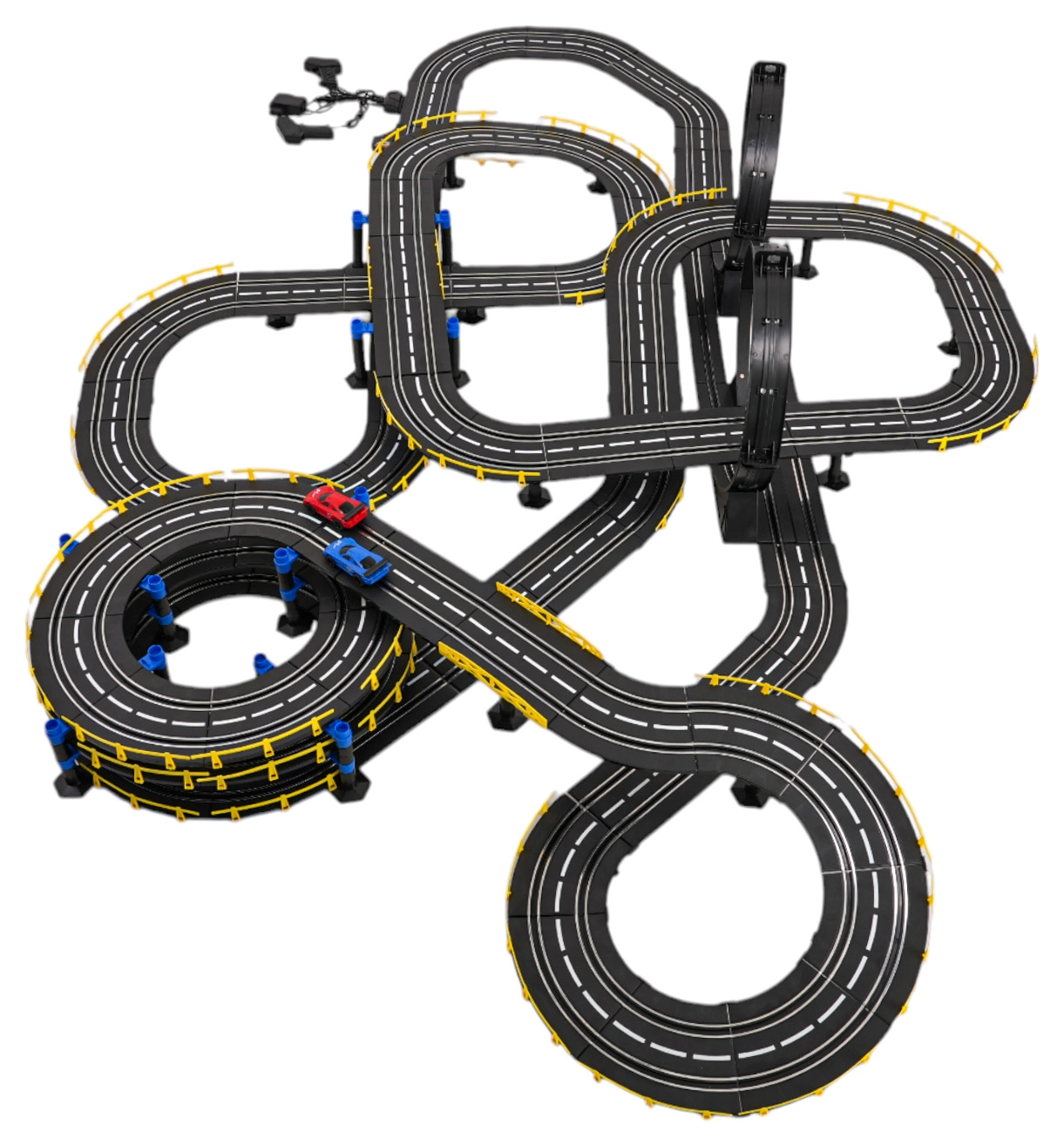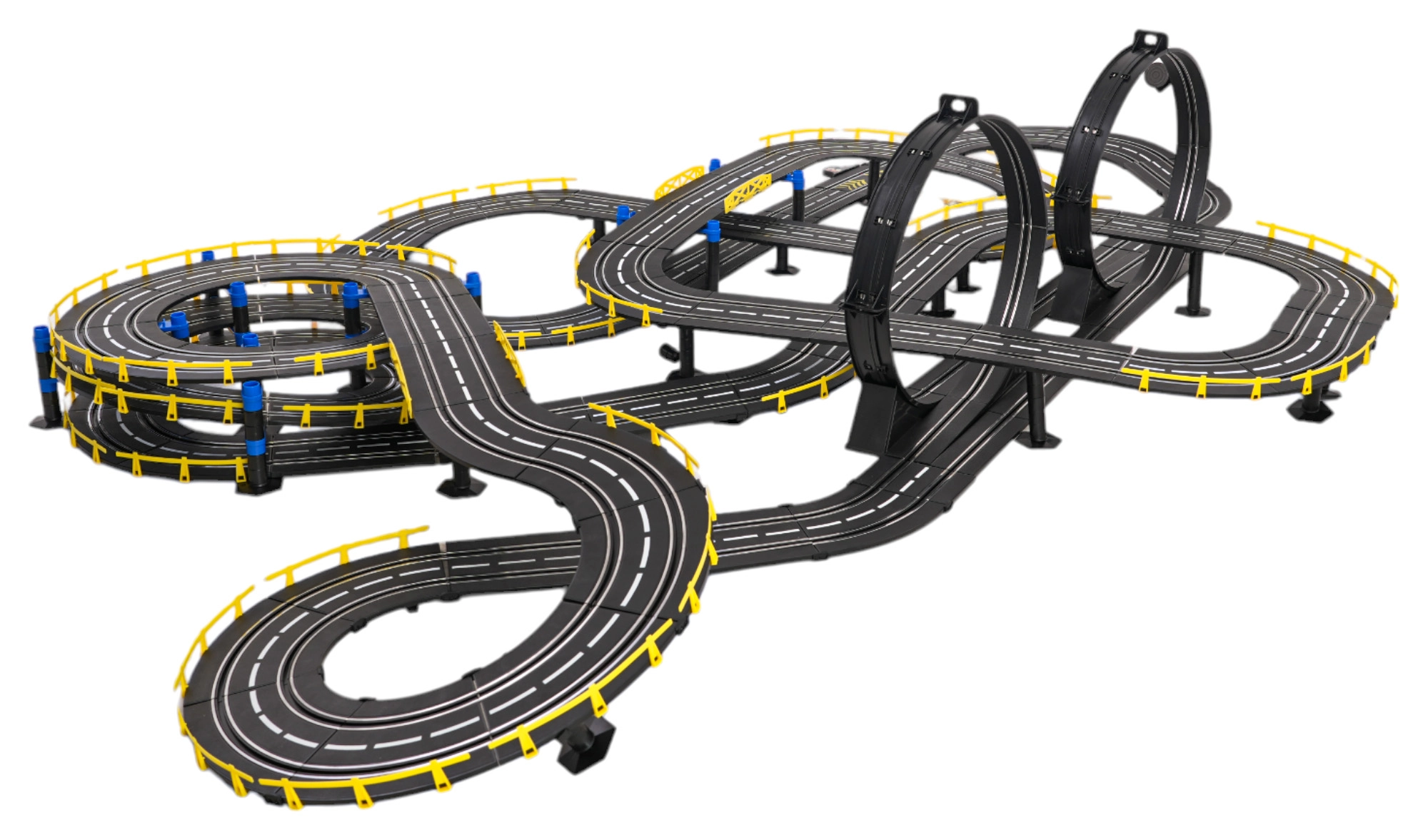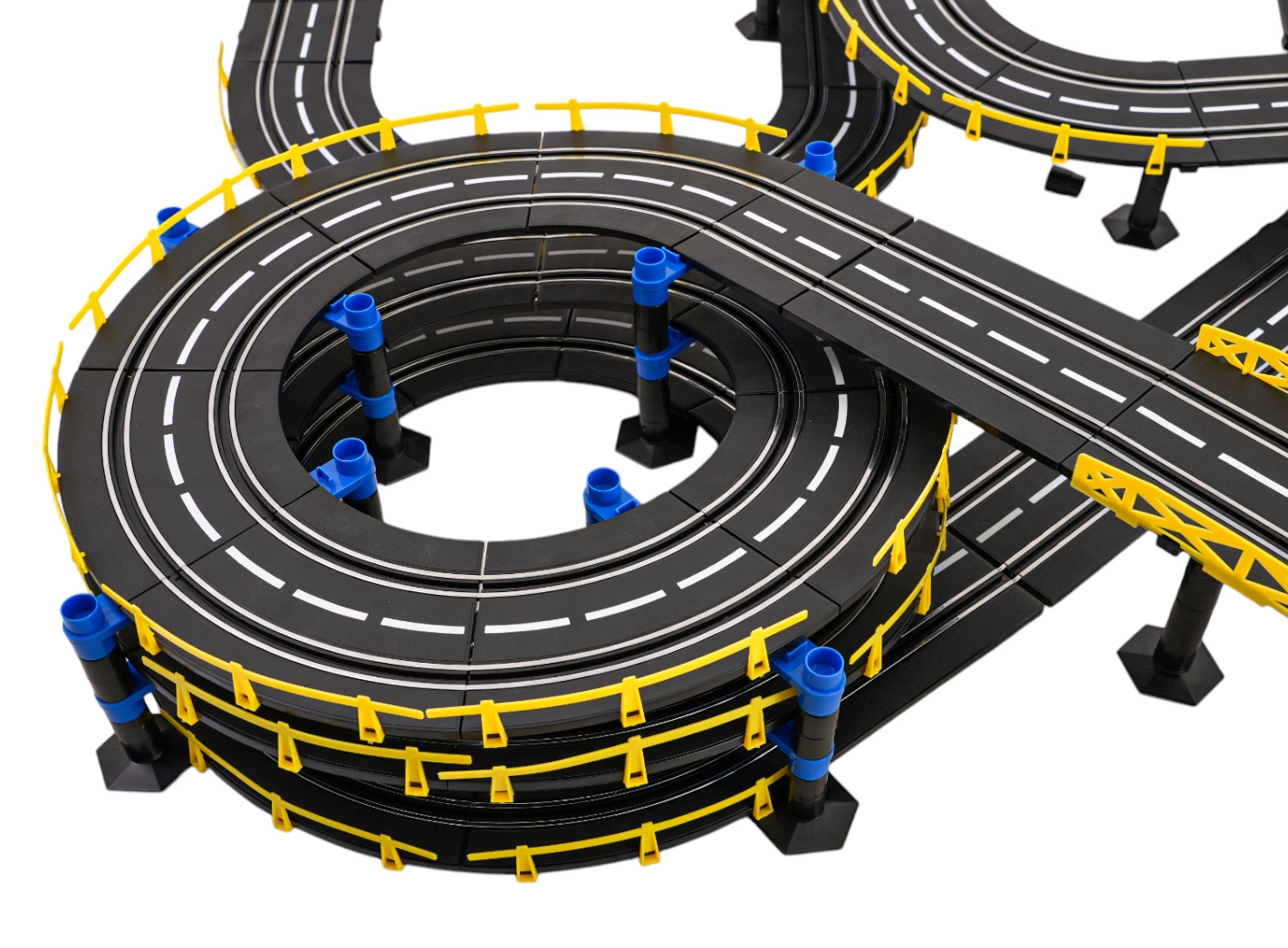 Sestavte si vlastní okruh s kombinací zatáček, spirál a rovinek pro maximální tempo a zábavu. Ideální pro kreativní závodní výzvy.