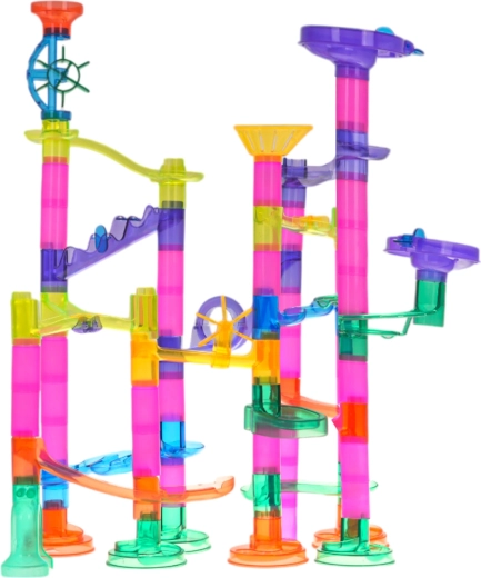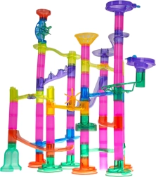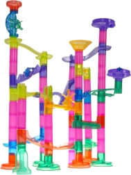 Postavte si vlastní kuličkovou dráhu s bohatou sadou 105 prvků a užijte si hodiny tvořivé zábavy. Barevné, průhledné díly umožní dětem od 3 let stavět různé trasy, zatímco 33 kuliček včetně 5 kusů se světýlky na baterie oživí hru. Tato dráha rozvíjí kreativitu, jemnou motoriku, koordinaci ruka–oko a učí logickému myšlení i trpělivosti.
