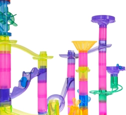 Barevná a stabilní kuličková dráha z průhledných dílů přináší dětem radost z objevování pohybu, gravitace a příčiny a následku. Děti si samy navrhují a staví konstrukce a poté sledují, jak kuličky sviští tunely, spirálami a trychtýři. Blikající kuličky napájené bateriemi dodají každé jízdě efektní světelnou podívanou.