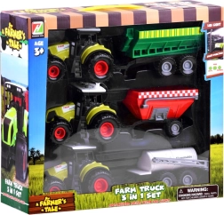 Sada obsahuje 3 traktory a 3 různé přívěsy. Děti mohou přívěsy snadno připojovat a odpojovat a vytvářet vlastní sestavy pro pestrou farmářskou zábavu.