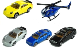 Sada obsahuje čtyři různobarevná autíčka a modrý vrtulník, ty poskytují mnoho dramatických herních možností. Vrtulník má pohyblivou vrtuli, což přidává interaktivitu.