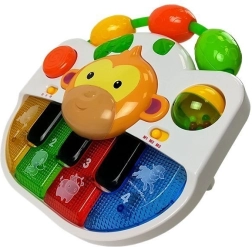 Dětské piánko s opičkou je zábavná a vzdělávací hračka určená pro děti starší 18 měsíců. Pomáhá rozvíjet manuální zručnost, představivost, sluch i zrak dítěte. Navíc dítěti pomáhá objevovat okolní svět a učení nových věcí.