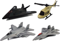 V balení najdete různé typy letounů, helikoptéru, tank a vojenská vozidla pro tvorbu autentických scénářů na palubě i mimo ni.