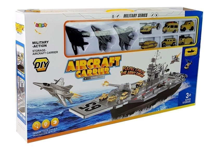 Tato detailně zpracovaná letadlová loď přenese děti do světa námořních operací. Velký trup, značená paluba a bohatá výzbroj se skutečně pohyblivými děly zaručí hodiny akční zábavy. Součástí balení je široká škála příslušenství – od letadel a helikoptéry až po tank a vojenská vozidla – díky nimž mohou děti vytvářet vlastní bojové scénáře.