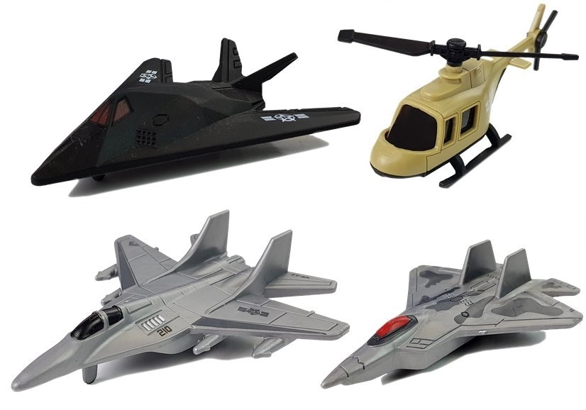 - Letadlová loď, 3 typy letadel/kluzáků, helikoptéra, tank, 4 vojenská vozidla, ponton, sada vojáčků, sada samolepek