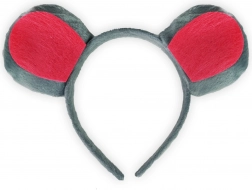 Šedá a červená plyšová čelenka s myšími ušima poskytuje pohodlné nošení pro všechny věkové kategorie.