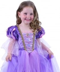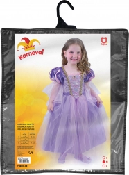 Propracované detaily v kombinaci fialových tónů a zlatého lemování dodávají kostýmu slavnostní vzhled, ideální pro karneval, narozeninové oslavy i domácí převlékání.