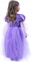 Proměňte každodenní hraní v kouzelný příběh. Tento dívčí kostým kombinuje jemné růžovo‑fialové odstíny s královskými detaily, jako je zlaté lemování a dekor šněrování na živůtku. Bohatá tylová sukně a pohodlný střih zajistí krásný vzhled i volnost pohybu.