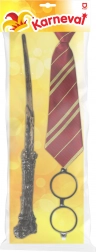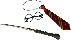 - Kompletní doplňky – hůlka, brýle a kravata v jednom balení.