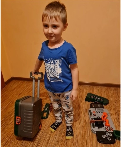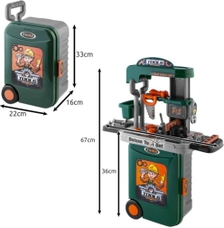 • Díky praktické přenosné kufříku si vaše dítě může své nářadí vzít kamkoliv s sebou.