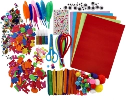 - Bohatý obsah: očička, peříčka, glitrové lepidlo, čtvrtky, nůžky a další doplňky