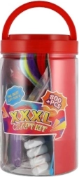 Vše je uloženo v odolné plastové dóze, která udržuje pracovní kout přehledný a materiál vždy po ruce. Skvělý tip na dárek pro malé kutily a výtvarníky.