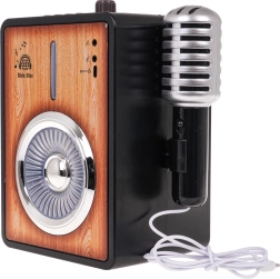 Dětský karaoke zesilovač přináší skvělou kombinaci hudby, světel a herních funkcí. Ovládací tlačítka jsou přehledná, hlasitost nastavíte otočným knoflíkem a po zapnutí přivítá děti veselá melodie se světelnou show. Připojte mikrofon, zapněte rockové písničky nebo dětské melodie a show může začít.