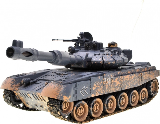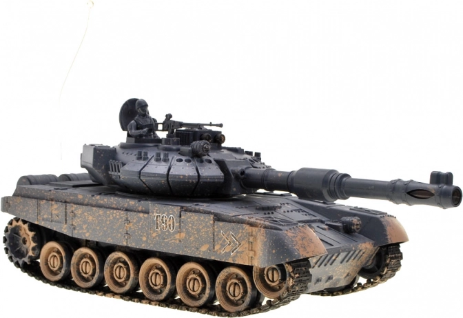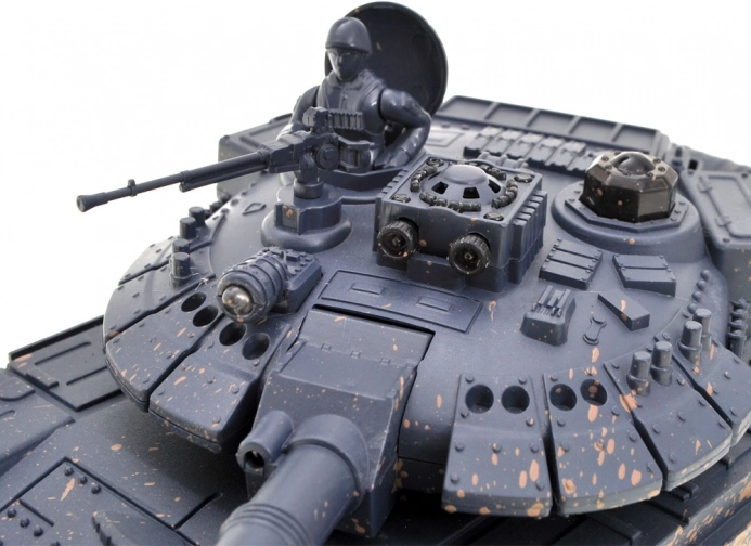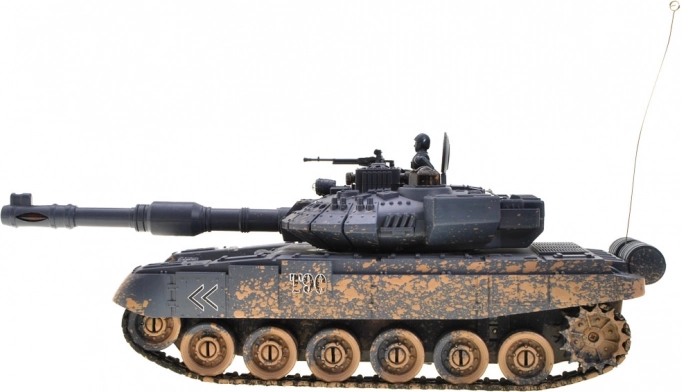 RC tank T-90 v grafitovém kamuflážním provedení nabízí otočnou věž až 180° (palba v rozsahu 360°), LED osvětlení, realistické zvukové efekty a plné dálkové ovládání. V balení najdete akumulátor s nabíječkou a figurku tankisty – připraveno k bitvě i k vystavení.