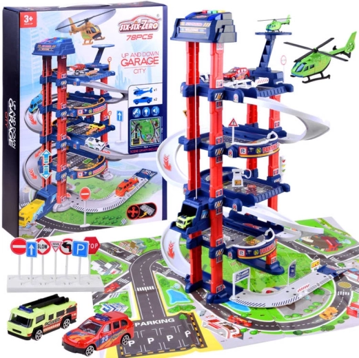 Objevte zábavný svět městské dopravy s tímto víceúrovňovým parkovacím setem se 4 patry, elektrickým výtahem a světelnými a zvukovými efekty. Součástí je podložka s plánem města, 2 kovová autíčka, helikoptéra a dopravní značky, díky nimž děti rozvíjejí fantazii i jemnou motoriku. Hračka je vhodná od 3 let a nabízí realistický zážitek z řízení a parkování.