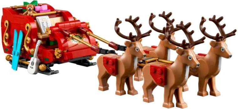 Postavte si ikonické LEGO sáně tažené čtyřmi soby a vydejte se s Mikulášem na rozvoz dárků. Sada nabízí bohaté detaily, od zdobených postrojů sobů až po propracovaný kokpit s ovládacím panelem. Díky množství doplňků a dárků je set skvělý pro imaginativní příběhy i jako vánoční dekorace.