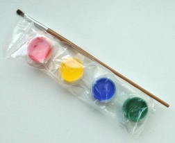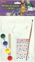 - Dřevěné dílky, barvy, štětec, vytlačovací obtisky