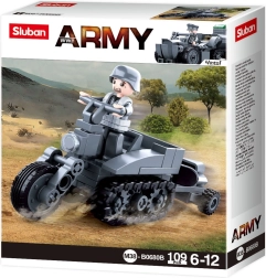 Objevte a vytvořte svůj vlastní historický motocykl s pásy z dob druhé světové války díky stavebnici Sluban. Vysoce kvalitní a odolný ABS plast, z kterého jsou dílky vyrobeny, zaručuje bezpečnější hru a dlouhou životnost.