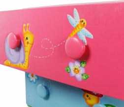 Každý šuplík zdobí originální motiv zvířátka nebo květiny, díky čemuž je komoda nejen úložným prostorem, ale i hrou pro děti.