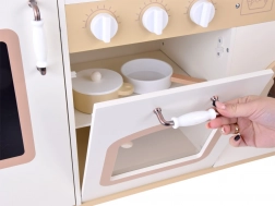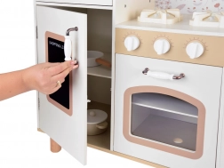 Děti s nadšením pozorují a napodobují dospělé, proto se kuchyňky pro děti těší velké oblibě. Tato stylová, prostorná, dřevěná kuchyňka je snem každého dítěte! Umožňuje bezpečné hraní, vaření pro medvídky a panenky, a dokonce i pořádání malých party. Kuchyňka umožňuje také role šéfkuchaře či vedení vlastní restaurace, což je nekonečná zábava plná kreativity.