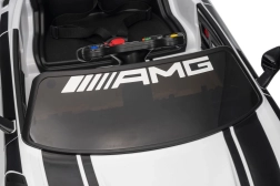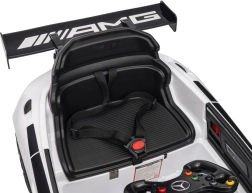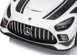 Dopřejte dětem zážitek z jízdy ve sportovním voze s licencovaným vzhledem MERCEDES-AMG GT3. Bílá karoserie se závodními prvky, výrazná maska a zadní spoiler podtrhují autentický vzhled. Auto je navrženo pro zábavu i bezpečnost – s pohodlným sedadlem, bezpečnostním pásem a plynulým rozjezdem.