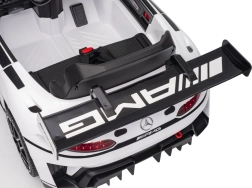 Stylové dětské auto na baterii MERCEDES AMG GT3 v elegantní bílé barvě přináší realistické detaily, sportovní křídlo a LED osvětlení. Ideální pro malé řidiče, kteří milují rychlá auta a zábavnou jízdu. Bezpečná sedačka s pásem a možnost dálkového ovládání pro rodiče zajišťují pohodlí i bezpečí při každé jízdě.