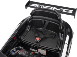Detailní zpracování karoserie, sportovní nárazníky, emblémy MERCEDES a AMG a závodní křídlo zajišťují prémiový vzhled, který si děti zamilují.
