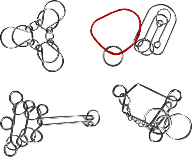 Tato sada obsahuje čtyři unikátní kovové hlavolamy, které prověří vaše logické myšlení a jemnou motoriku.